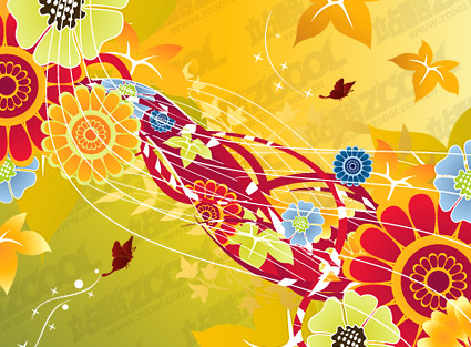 eps format, keyword: vector material, dynamic, butterflies, flowers, lines, flowers, colourful