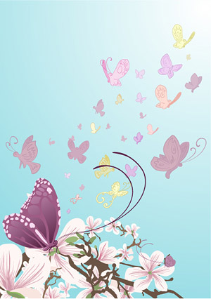 Location: Home > Vector > Vector Flower > Purple flowers and butterflies