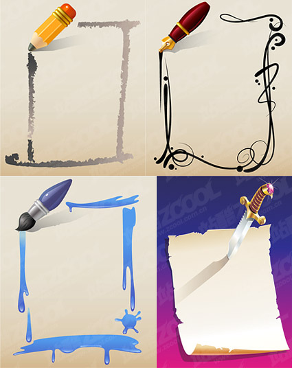 eps format, with jpg preview, the crucial words: Vector pencil, pen, brush, daggers, knives, lace, borders, ink, old paper, vector material