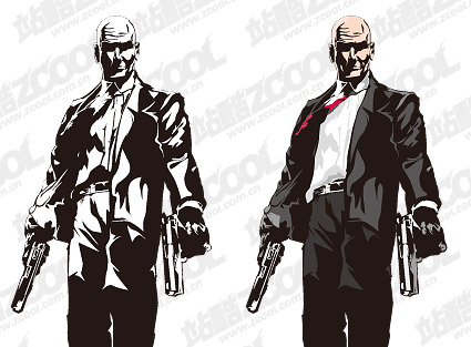 ai format, cdr format, with jpg preview, the crucial words: Vector figure killer 47, Hitman, movie characters, a pistol, Vector material