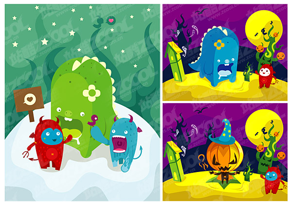 eps format, with jpg preview, the crucial words: Vector cartoon characters, cute, monster, Halloween, bats, pumpkins, the moon, the vector material