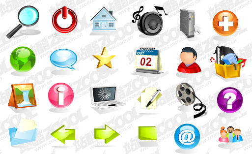 ai format, eps format, png formats, including jpg preview, keyword: vector icon, a magnifying glass, search, shut down, shut down the house, speakers, music, computer mainframe, Crystal round of the Earth, a dialogue bubble, The Star, calendar, the user, boxes, picture, notebook computers, documents, video, to help, folder, arrows, mail, vector material