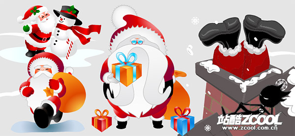 eps format, with jpg preview, keyword: Vector Christmas, Santa Claus, chimney, the Snowman, Christmas hat, a gift, vector material