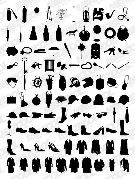 ai format, version cs3, including jpg preview, keyword: vector silhouette, fire extinguishers, balloons, an easel, oil lamps, pipes, medical supplies, stethoscope, syringes, containers, alarm clock, stapler, an umbrella, a windmill, pens, masks, keys, Darts, goggles, hat, gloves, shoes, clothes, suits, jackets, boots, high heels, vector material