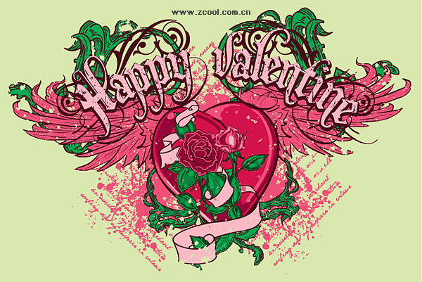 eps format, including jpg preview, keyword: Vector Valentine's Day, love, wings, heart-shaped, flowers, roses, ribbons, vector material