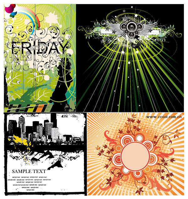 eps format, including jpg preview, keyword: Vector pattern, the trend of the design, the trend of the element, wings, speakers, light, silhouette figures, black and white urban construction, the radiation background, vector material