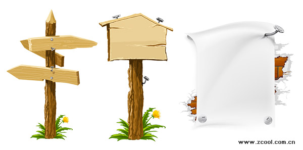 eps format, including jpg preview, keyword: Vector arrow, wood, wooden, signs, white, bulletin boards, walls, nails, vector material