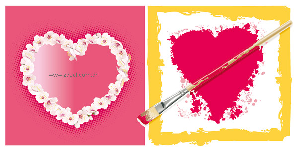 eps format, including jpg preview, keyword: Vector heart-shaped, flowers, branches, cherry blossoms, brushes, paint, painting, irregular border, love, Valentine's Day element vector material