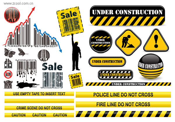eps format, including jpg preview, keyword: Vector sales, bar code, arrow, curve, butterfly, prohibit, silhouette figures, sale, warning tapes, blockade, road maintenance, maintenance, yellow, vector material < br />