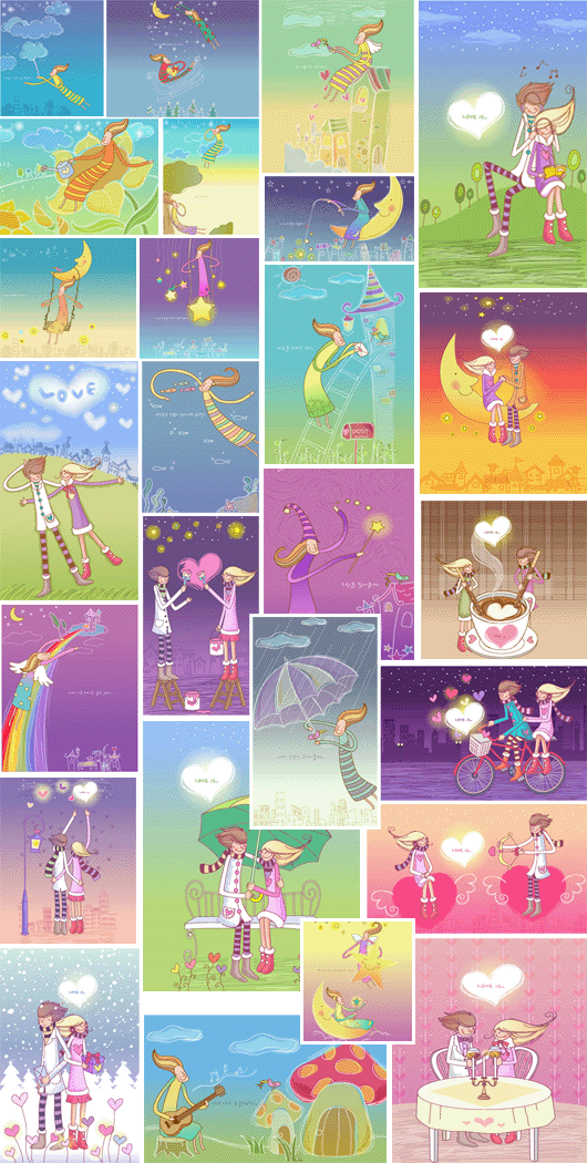 Keyword vector couple people love cute romantic fairy tale classic cartoon character beautiful boys and girls fashion element of heart-shaped Valentine's Day
