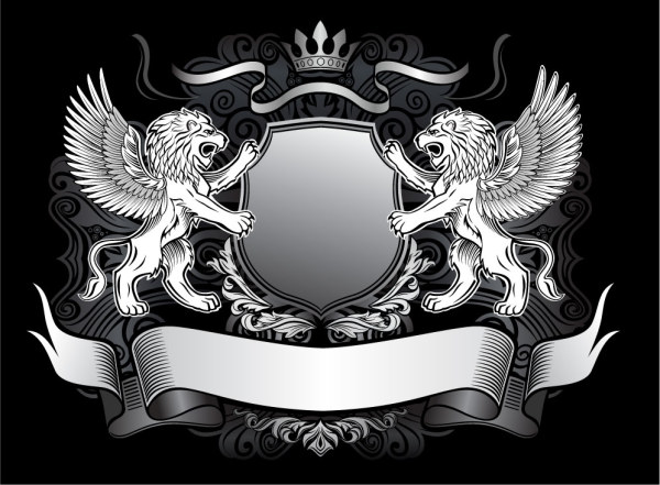 Continental keyword lion shield pattern banner streamer patterns Ribbon Crown Royal gorgeous wings vector retro material